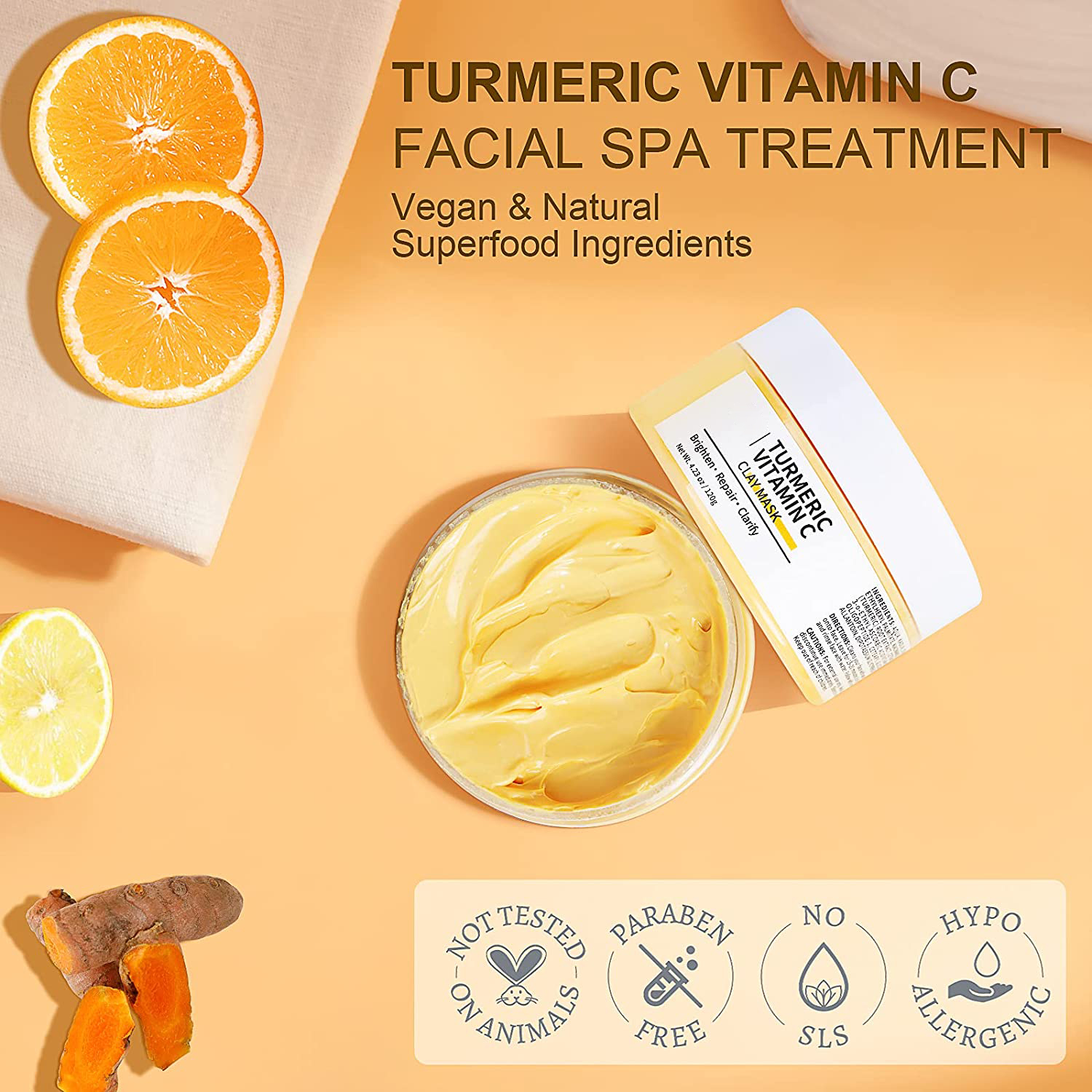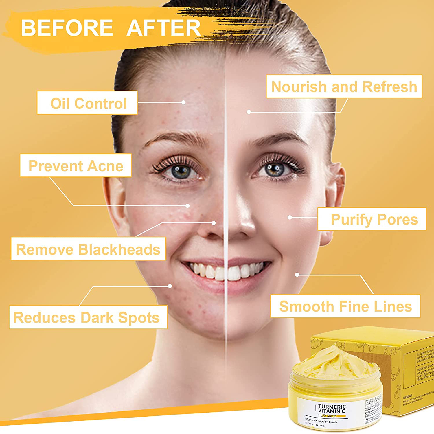 You are here: Home » Products » Face care » face mask » Acne Dark Spots Turmeric Clay Mask Vitamin C Mud Facial Mask for Blackheads Wrinkles Hydrating Cleansing