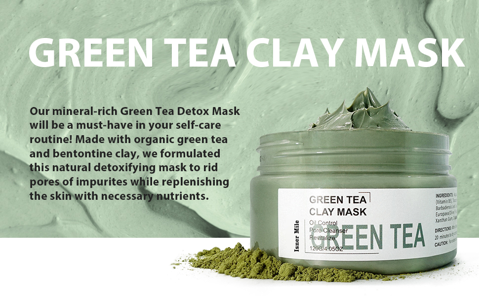 Deep cleansing for skin: Our green tea clay mud mask is a natural vacuum cleaner for the skin. It relies on high viscosity and adsorption to remove the dirt and impurities deep down from the skin, removing pimples, blemish marks, blackheads, redness and breakouts on your body. Minimizer the pore: this green tea mud mask makes facial pores appear smaller as it binds and pulls dirt out from the face pores, making it appear smaller and less visible, It unclogs blocked facial pores to have a healthy and more vibrant face complexion Hydrating and moisturizer: Featuring sodium hyaluronate, olive oil, and coconut oil, and more nourishing and quality blend of Organic ingredients, this mask offers nourishment to ease dry and delicate skin, enhances skin's water retention. This pure and soft blend creates the optimal combination for the skin Anti-Aging clay mask: this premium clay mask is high in collagen, sodium hyaluronate, with its anti aging wrinkle prevention properties, it's nourishing and naturally softening the skin whilst hydrating, improving its appearance and health by tightening and exfoliating leaving skin more toned and clear