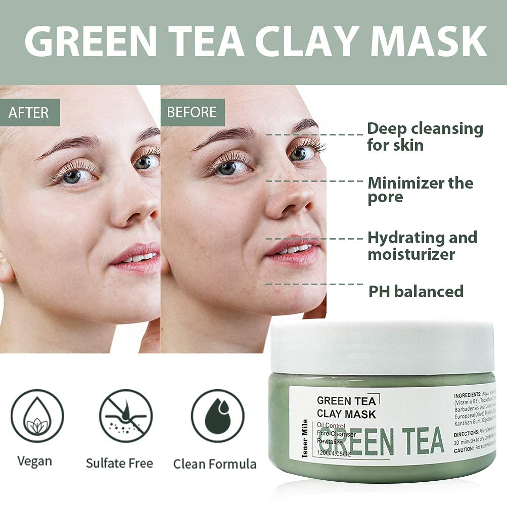 Deep Pore Cleansing Blackhead Remover Clay Mask Pore Minimizer Hydrating Moisturizing Green Tea Facial Mud Mask