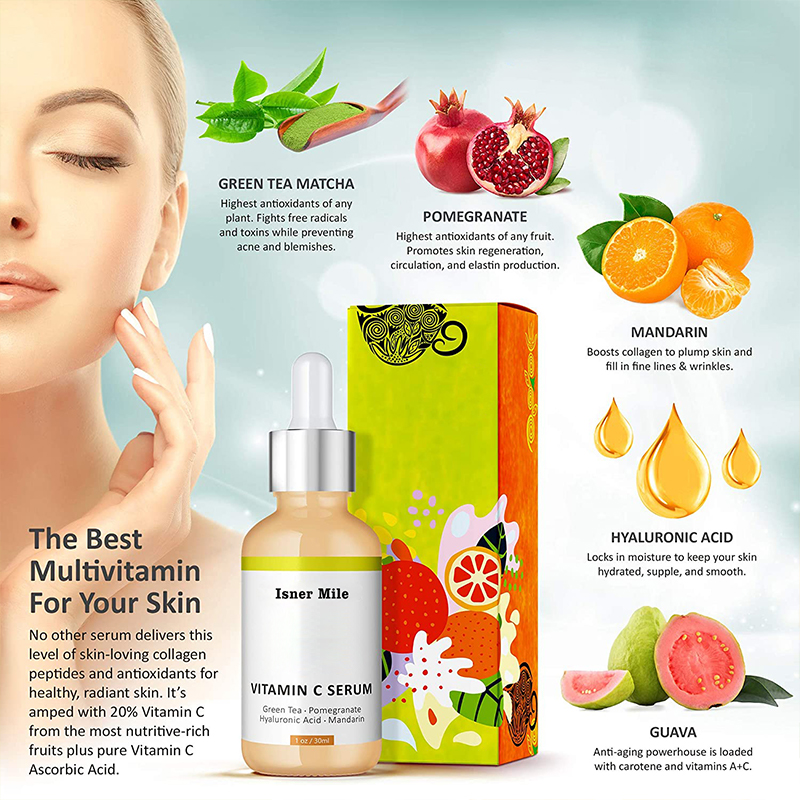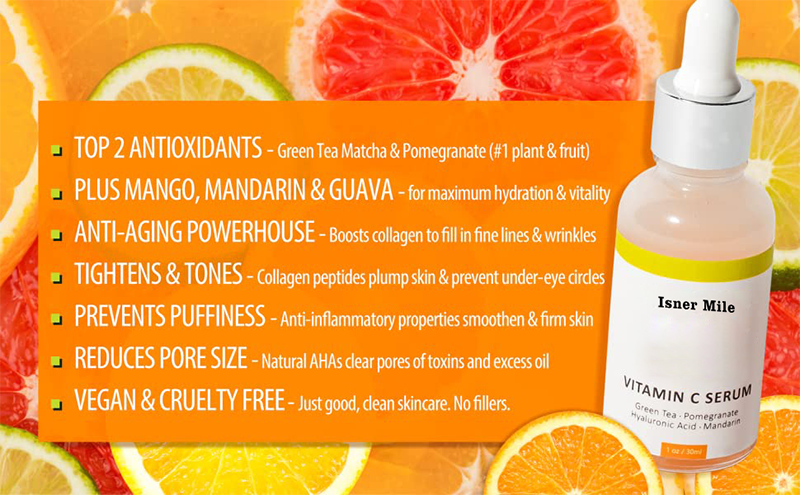THE BEST MULTIVITAMIN FOR YOUR SKIN – Meet your skin’s newest best friend. The only Face Serum that’s amped with the #1 highest antioxidant PLANT and FRUIT (Green Tea Matcha + Pomegranate) with 20% Vitamin C, 5% Hyaluronic Acid, 10% Hydrolyzed Collagen, and 100% pure Ascorbic Acid to protect, hydrate, and revitalize your skin in minutes, while combatting Acne, Wrinkles, and Blemishes. Safe for All Skin Types. CONTAINS THE BEST SUPERFOODS FOR HEALTHY, RADIANT SKIN - Glowing Clear, Glass Skin needs nutritive-rich Vitamin C and Natural Acids to seal in hydration and protect your skin for the day ahead. Potent organic antioxidants—GREEN TEA MATCHA, POMEGRANATE, MANDARIN + GUAVA—restore skin vitality. PURE HYALURONIC and ASCORBIC ACIDS lock in moisture & exfoliate dead skin cells. Raw CACAO, ALOE + VITAMIN E boost collagen, increase blood flow, and revitalize dull skin. ANTI-AGING FORMULA PLUMPS, TIGHTENS & TONES – Loaded with Collagen Peptides, this age-defying Facial Serum plumps skin; fills in fine Lines and wrinkles; and enhances skin elasticity and texture. Powerful Natural Acids counteract the aging effects of free radicals to help restore radiance and create a bright, smooth translucent complexion. Anti-inflammatory properties reduce Puffiness, Age Spots, Hyperpigmentation, and Under-eye Dark Circles for Healthy, Youthful Skin. TOUGH ON ENLARGED PORES, ACNE & BLEMISHES – This Pore Reducing Serum uses potent Natural AHAs to clear your pores of excess oil and blackheads to clarify and protect your pores from grime that leads to Acne, Breakouts, and Unsightly Enlarged Pores. Don't’ feel insecure or embarrassed about problem skin. Restore Both Your Skin and your Confidence by trying our proprietary blend formula risk-free. There’s nothing to lose other than dull, drab skin. We’re confident it’ll be Your GO-TO SERUM!